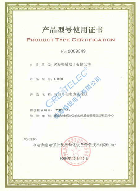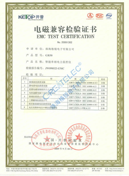 GR50電磁兼容檢驗證書-珠海格銳電子有限公司