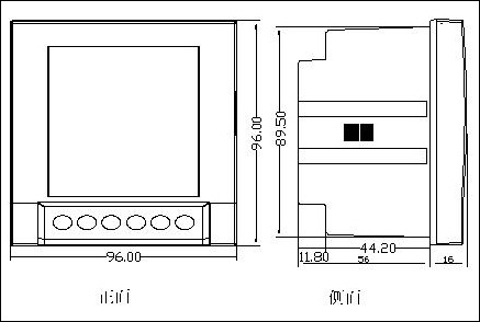 3、 性能指(zhǐ)标 ------------------------------------------------------- ■精度等級:電流(liu)、電壓0.5級,功率0.5級,有(yǒu)功電度1級 ------------------------------------------------------- ■額定輸(shū)入:電流5A、1A,電壓380V、100V 頻率(lü)45Hz~60Hz ■過載能力:電流、電(dian)壓1.2倍/連續,電流10倍(bèi)/1秒 ------------------------------------------------------- ■開關量輸入:4路(lu),内部提供電源或(huò)外部提供電源 ■繼(jì)電器輸出:2路,控制(zhi)方式爲自控或遙(yao)控、容量爲250Vac/5A,30Vdc/5A -------------------------------------------------- ■模拟量(liàng)輸出:1路4~20mA輸出,内部(bu)有源,輸出負載爲(wei)500歐姆 -------------------------------------------------- ■顯示:60*60 大液晶(jīng)屏帶背光顯示 ■按(an)鍵:六按鍵,查詢和(hé)設置參數 ■通訊端(duan)口:1路RS485通訊,MODBUS-RTU協議,波(bō)特率爲2400~19200bps ---------------------------------------- ■工作電源(yuán):85~265VAC 100~300VDC ■整機功耗:<5VA ■工頻耐(nai)壓:輸入-輸出-電源(yuán) AC2kV/1min ■絕緣電阻:>50MΩ ■沖擊電(diàn)壓:5kV(峰值),1.2/50uS ---------------------------------------- ■快速脈沖(chòng)群抗擾度: GB/T 17626.4(IEC61000-4-4) Level 3 ■浪湧抗(kàng)擾度: GB/T 17626.5(IEC61000-4-5) Level 3 ■靜電抗擾度(du): GB/T 17626.2(IEC61000-4-2) Level 3 ■射頻電磁場輻射(shè)抗擾度: GB/T 17626.3(IEC61000-4-3) Level 3 ■工頻磁場(chǎng)抗擾度: GB/T 17626.8(IEC61000-4-8) Level 4 ■阻尼振蕩(dàng)磁場抗擾度: GB/T 17626.10(IEC61000-4-10) Level 4 ■振蕩(dàng)波抗擾度: GB/T 17626.12(IEC61000-4-12) Level 3 ■電壓突(tū)降和電壓中斷抗(kàng)擾度:GB/T 15153.1-1998 A.1.5 Level 1 ---------------------------------------- ■工作溫度:-20~70℃ ■存(cun)儲溫度:-40~80℃ ■相對濕度(dù):5~95%RH,無凝露 ----------------------------------------